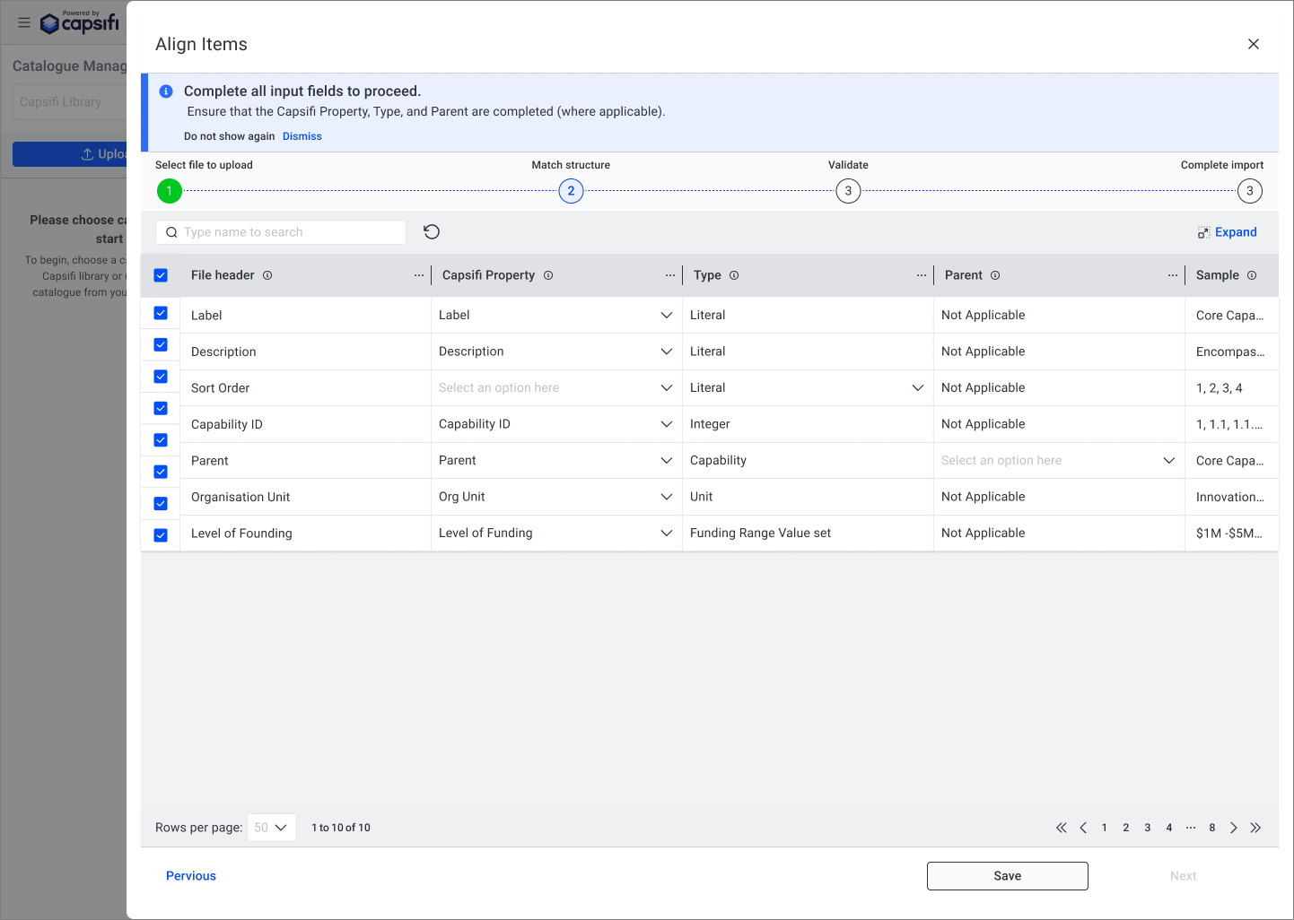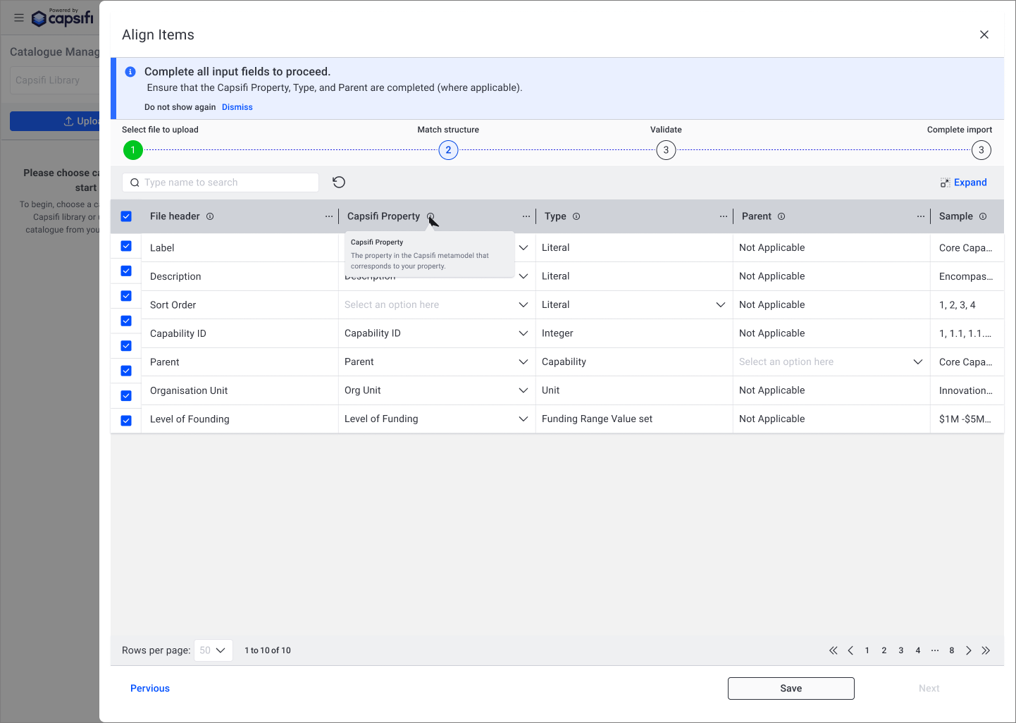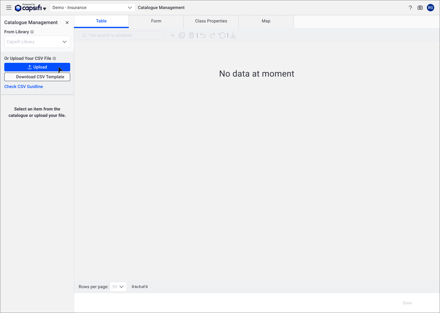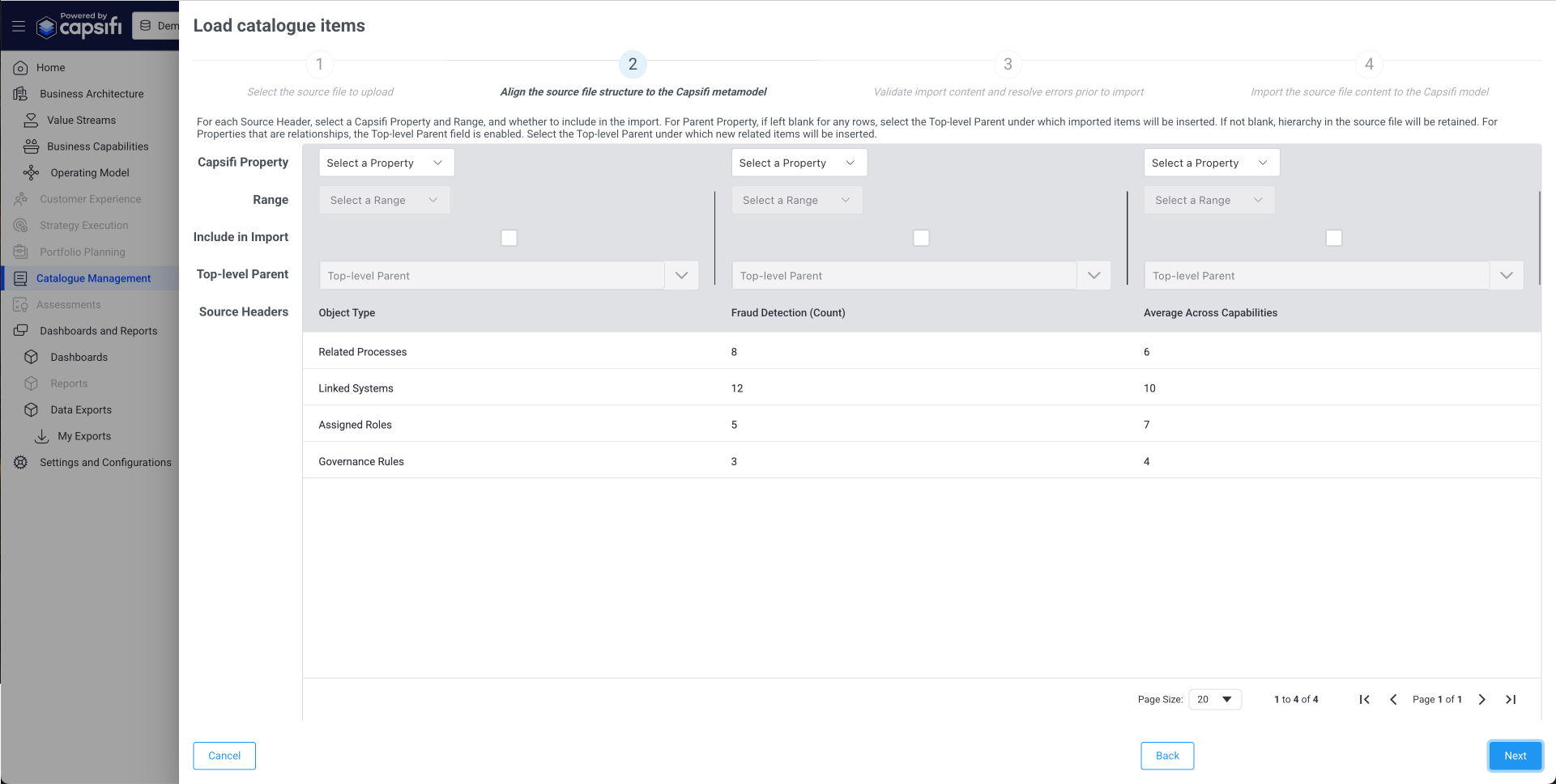 Capsifi's file upload feature enables users to either upload their own Excel data or utilise pre-built templates from the Capsifi library. This functionality is central to activating Capsifi's AI-powered suggestions, which only work when users upload business capability data.